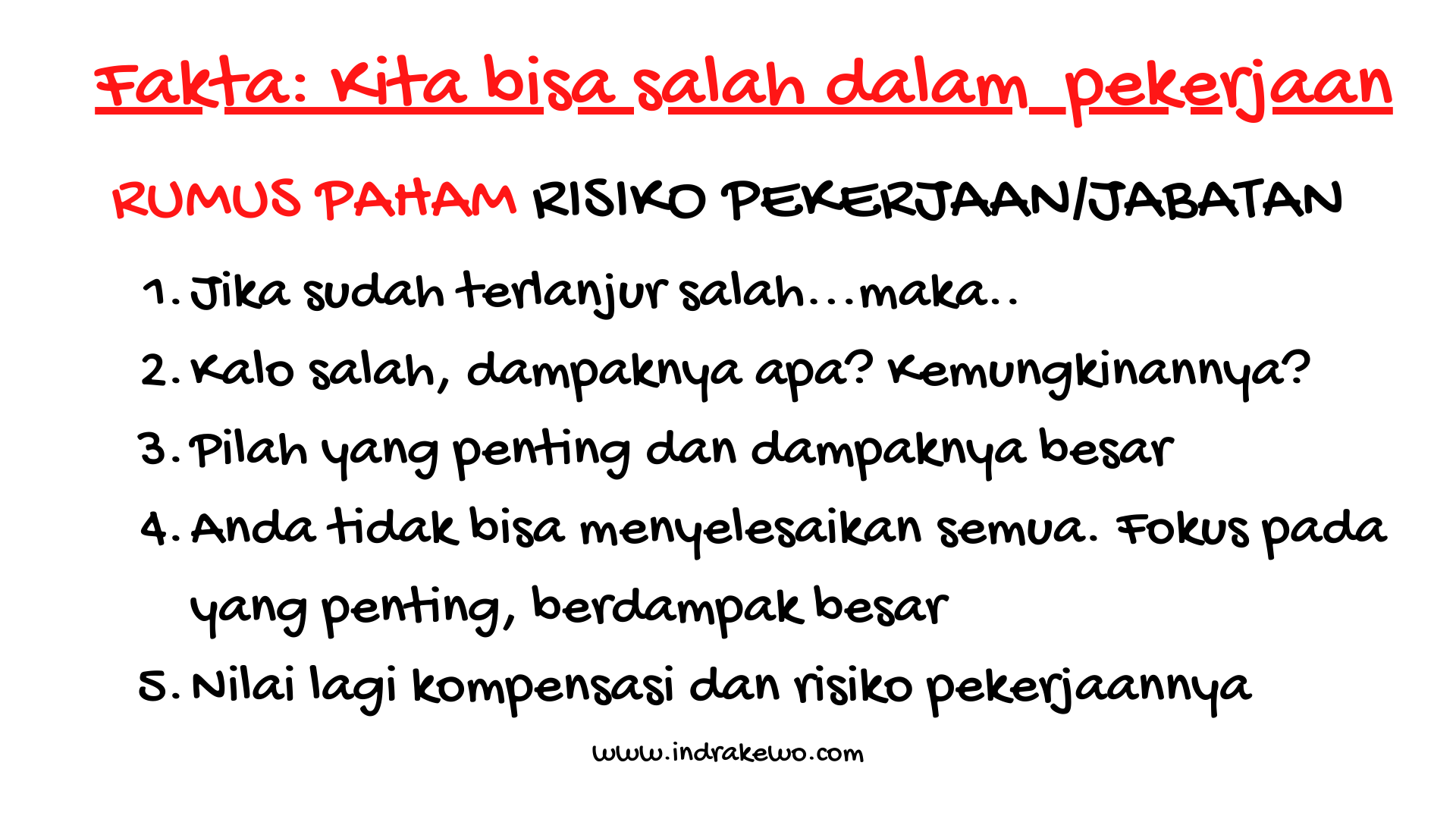 Dalam pekerjaan atau karir pasti ada saja kesalahan. Kita mungkin bisa membela diri, karena mungkin memang bukan kesalahan kita atau mungkin karena murni missed. Sudah tentu atasan atau pimpinan tidak mau tahu alasan apa pun dibalik sebuah kesalahan. Salah ya tetap salah, mau diapain juga gak bisa merubah keadaan.